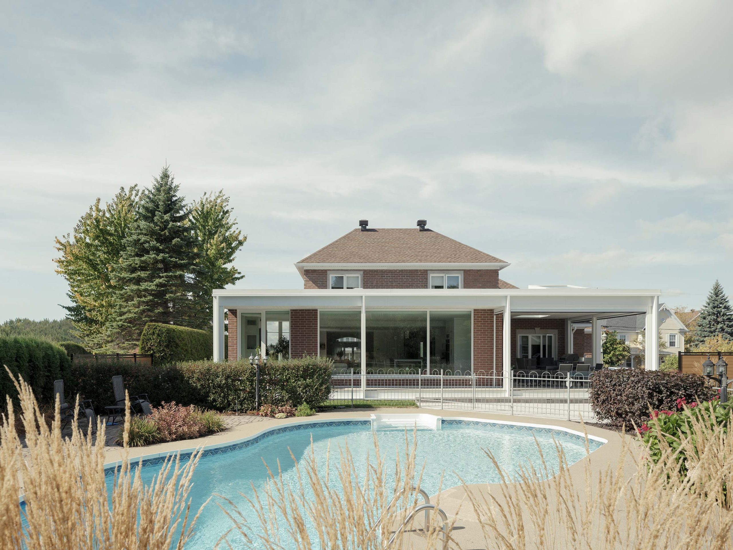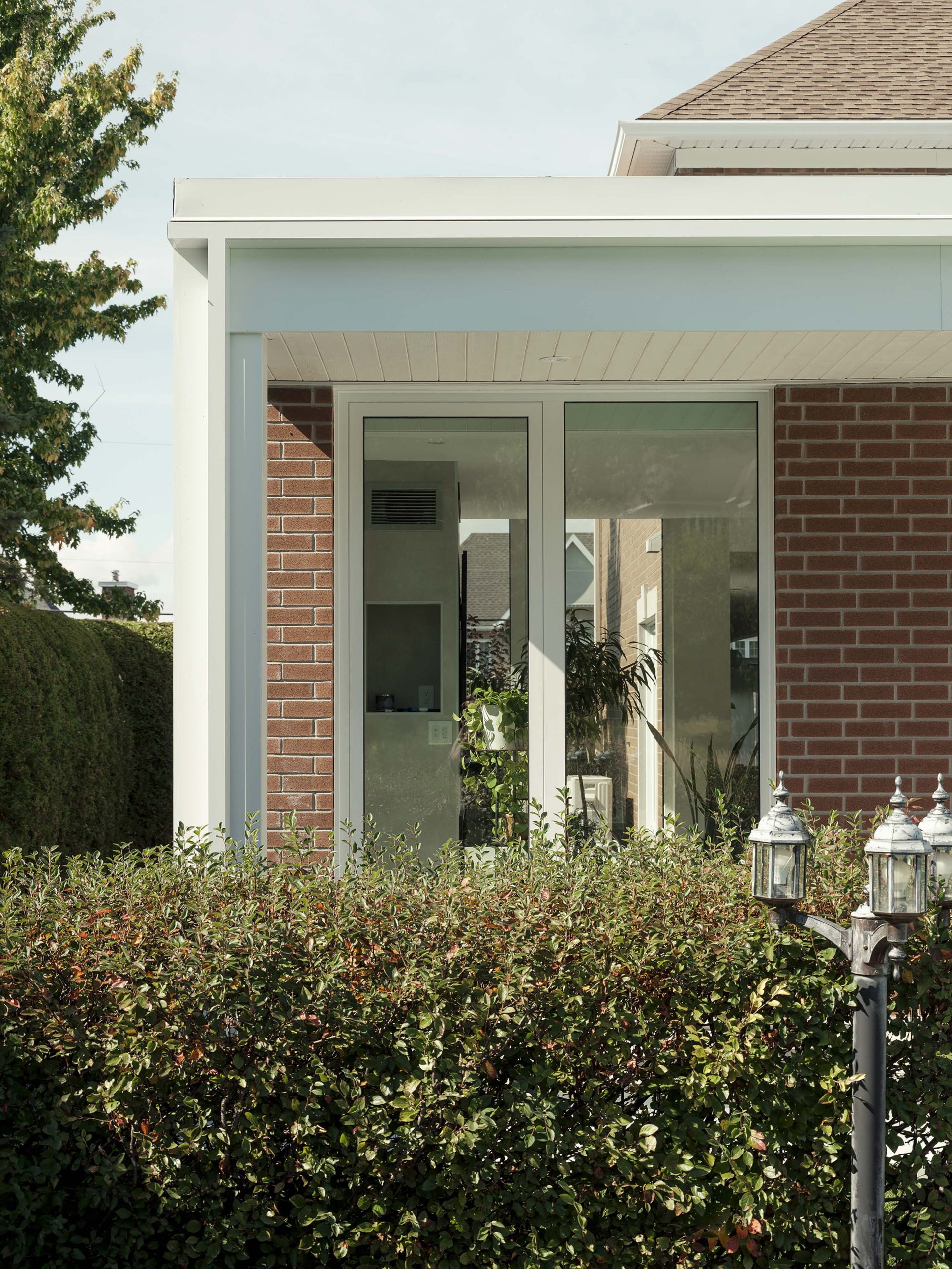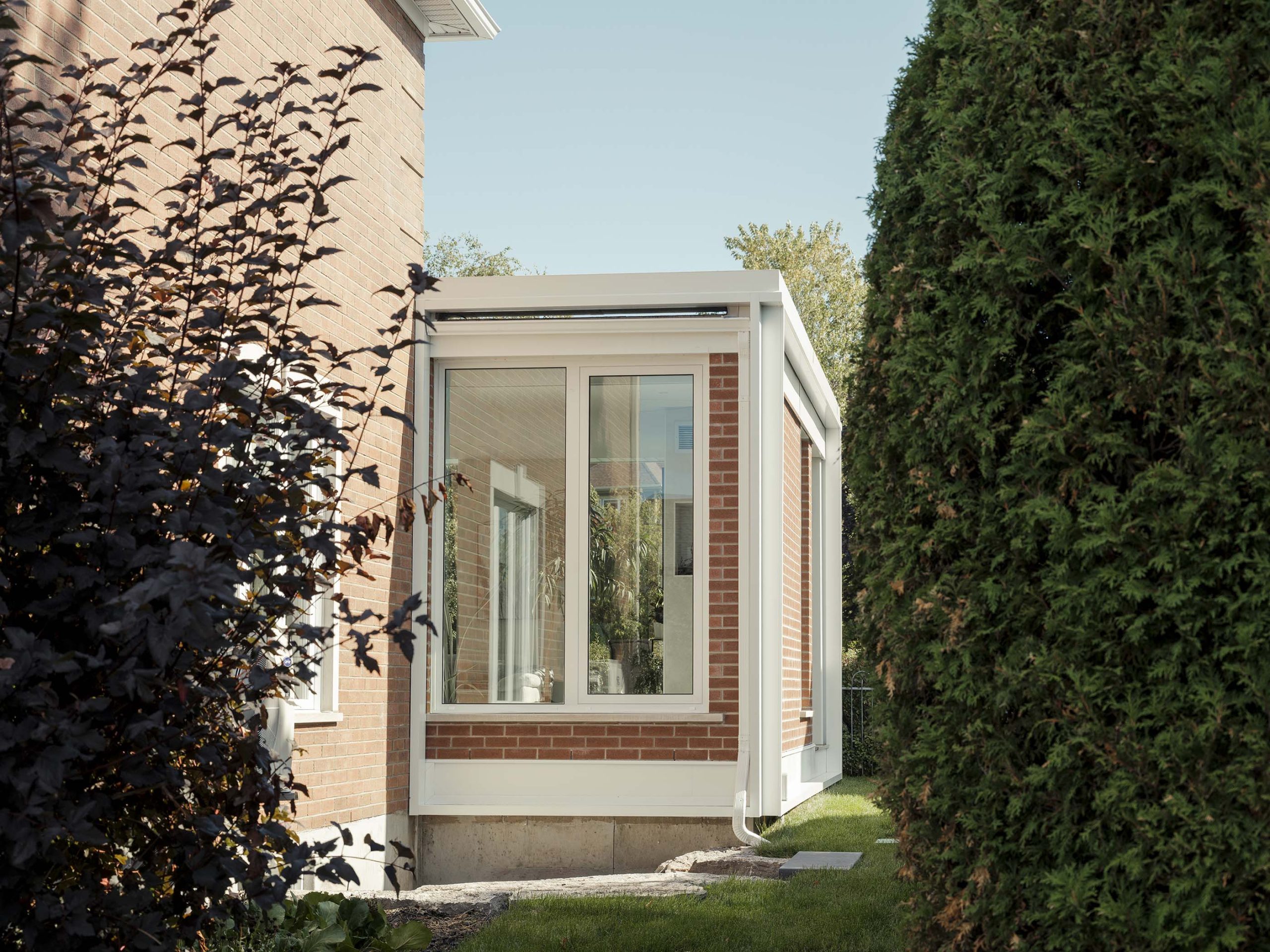 Ce projet consiste en l’extension d’une maison unifamiliale, avec le réaménagement de la cuisine et de la salle à manger pour venir agrandir ces espaces et créer un nouvel espace salon avec foyer ouvert sur le jardin. L’idée conceptuelle réside dans la volonté de confondre l’existant de l’agrandissement en misant sur la continuité architecturale tant dans les matériaux que dans les détails architecturaux : la brique d’origine est reprise, ainsi que les éléments de finition de teinte claire, assurant une cohérence architecturale et le respect du bâtiment existant.
