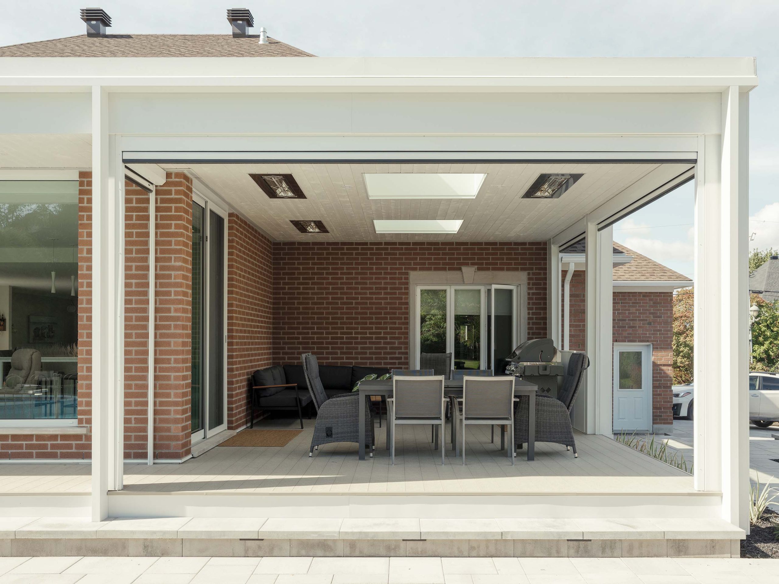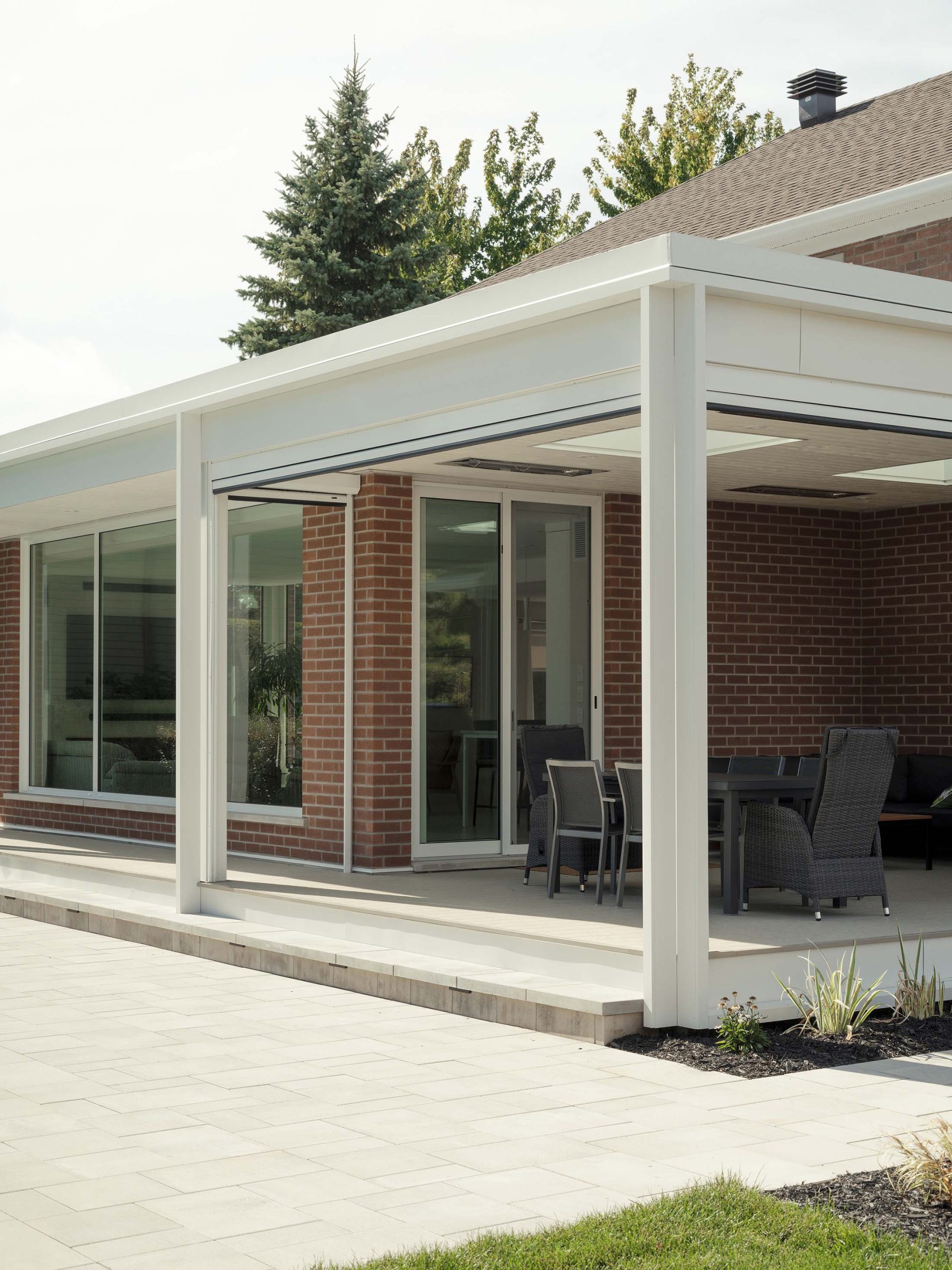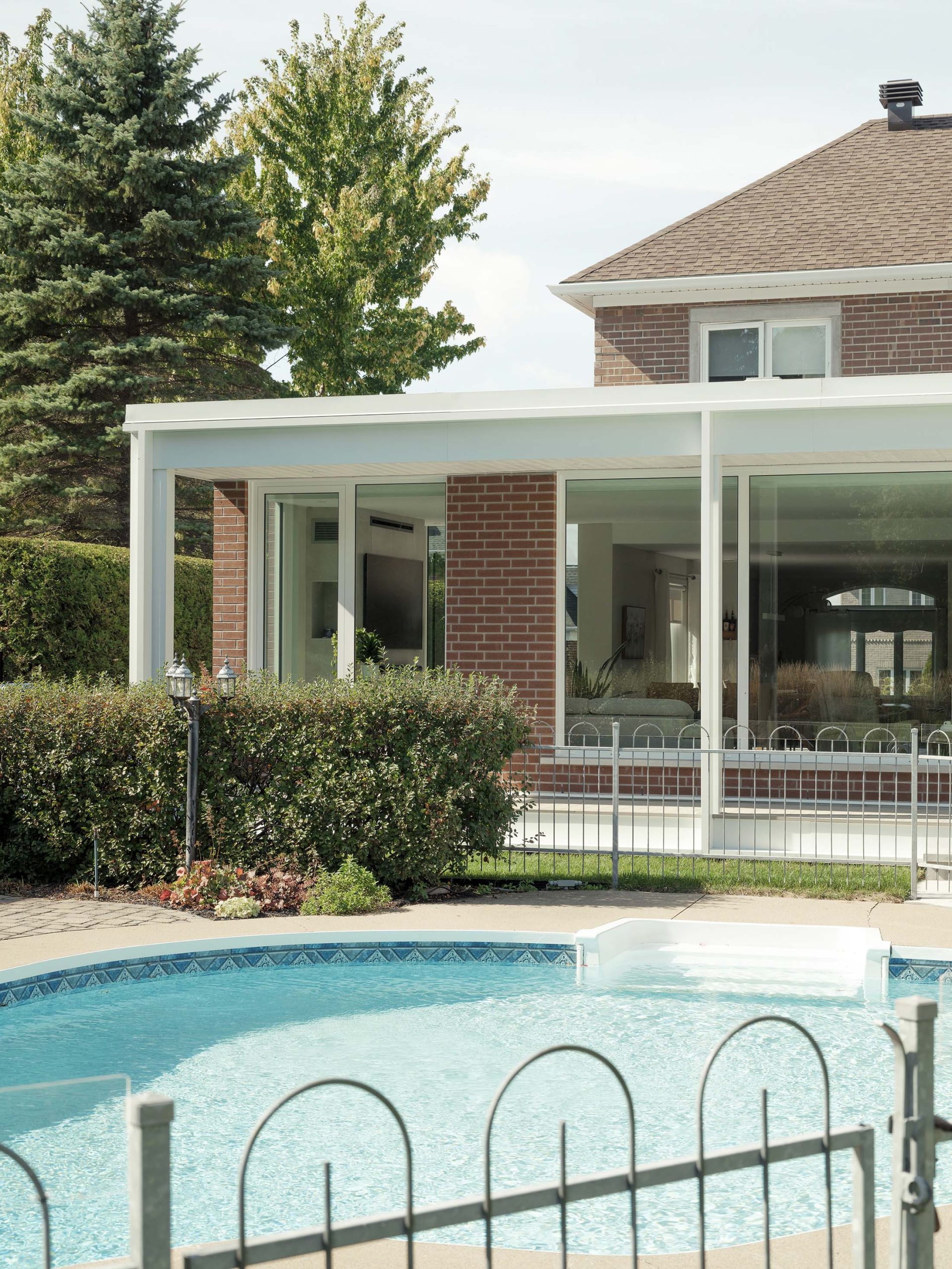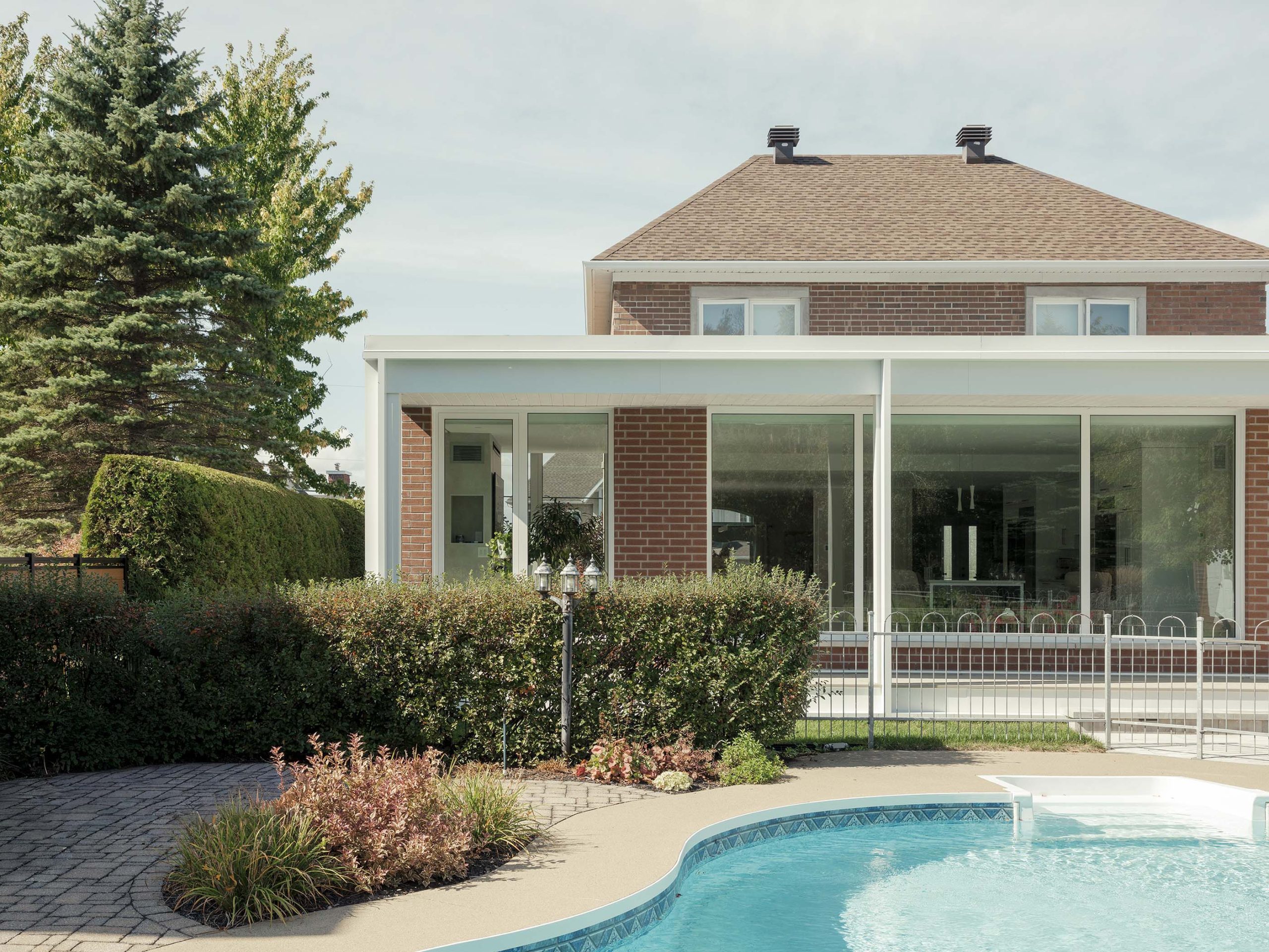 Ce projet consiste en l’extension d’une maison unifamiliale, avec le réaménagement de la cuisine et de la salle à manger pour venir agrandir ces espaces et créer un nouvel espace salon avec foyer ouvert sur le jardin. L’idée conceptuelle réside dans la volonté de confondre l’existant de l’agrandissement en misant sur la continuité architecturale tant dans les matériaux que dans les détails architecturaux : la brique d’origine est reprise, ainsi que les éléments de finition de teinte claire, assurant une cohérence architecturale et le respect du bâtiment existant.